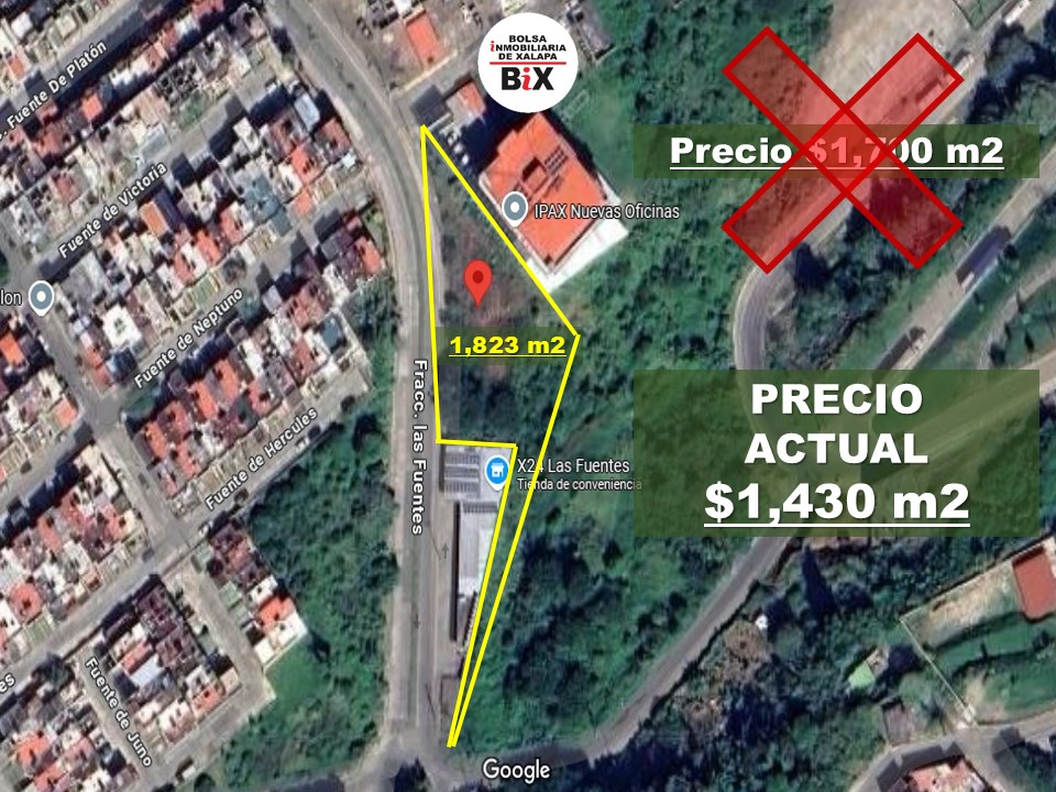 Excelente inversión en terreno urbano de 1,823 m² en el Fraccionamiento Las Fuentes, Xalapa, Veracruz.